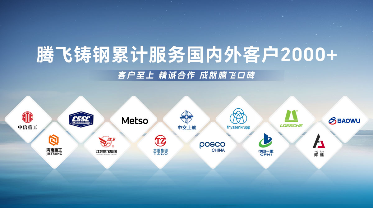 騰飛鑄鋼成立于2006年,位于全國鑄造基地河南省新鄉市,擁有員工300余人,是一家從事150噸以下碳鋼、低合金鋼、不銹鋼鑄鋼件研發、制造、服務為一體的國家高新技術企業?! 」就ㄟ^了ISO9001國際質量管理體系認證,擁有2項發明專 利,2項河南省科技成果、25項實用新型技術,通過了“環??冃гu級B級企業”驗收,先后榮獲“河南省鑄造行業綠色發展企業”、 “河南省科技型中小企業”、“河南省專精特新中小企業”等榮譽稱號?! 」緭碛?臺25噸電爐,4臺大型天燃氣熱處理爐、10米回旋自動拋丸機一臺, φ8m數控立車、φ10m數控滾齒機等各類高精裝備100余臺套,年產能3萬余噸,能為客戶提供從產品設計、木模加工、大型鑄造、大型加工一站式服務,產品廣泛應用于建材、冶金、鍛壓、冶金、水工、路橋、化工等多個重型行業?! ¢L期服務于中信重工、中船重工、美卓、上海中交、萊歇、寶武、濟南重工等全球知名企業,在行業內擁有較高的市場知名度和美譽度。